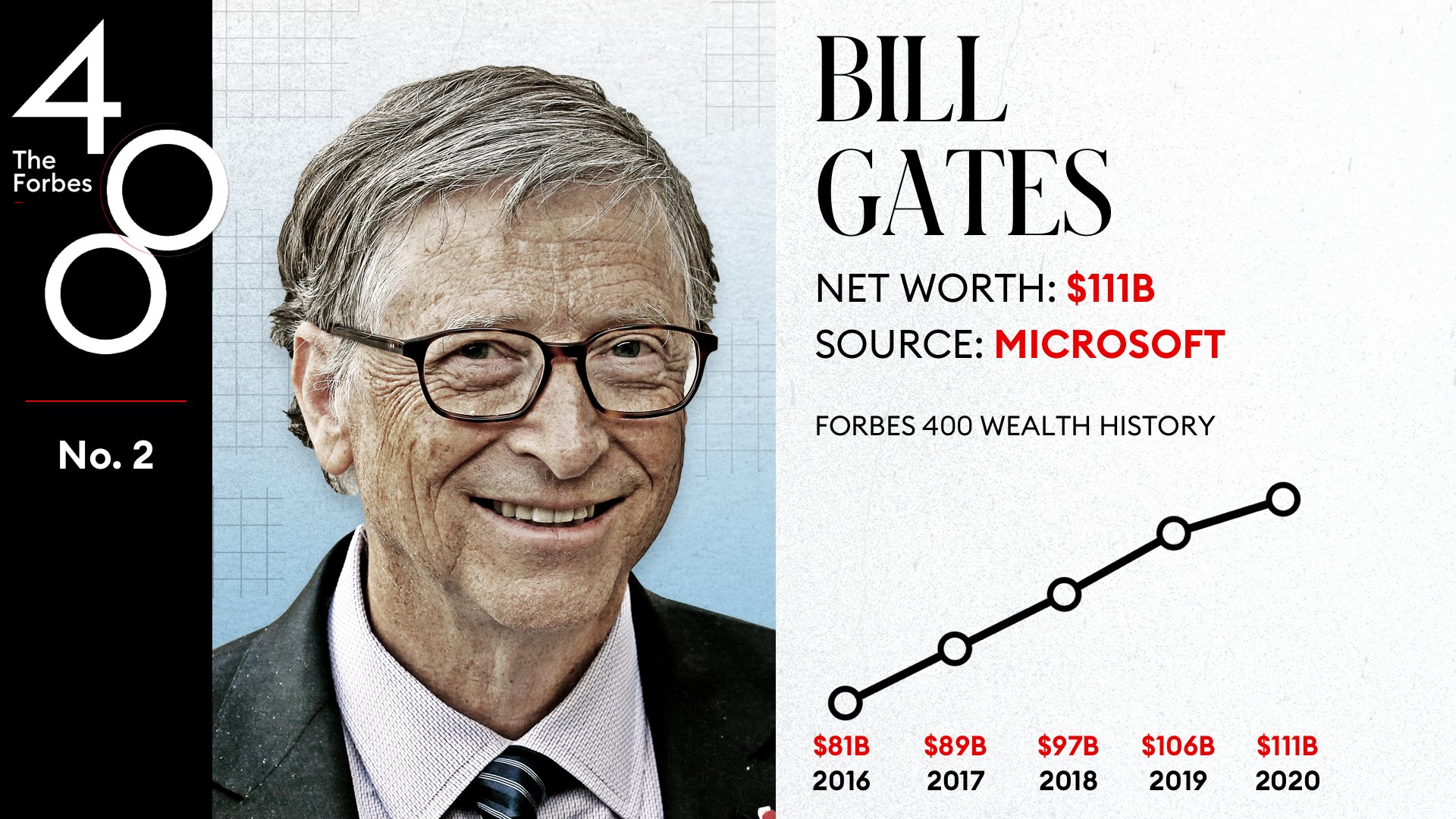 From 1995 to 2017, Bill Gates was the most extravagant individual on the planet, as per Forbes, taking all things together yet four of those years. After the resurgence of Microsoft stock, he became the most extravagant individual on the planet again from March 2014 to July 2017. His abundance was made by being the biggest individual investor in Microsoft until May 2014. His total assets corresponded to the presentation of the Microsoft organization.